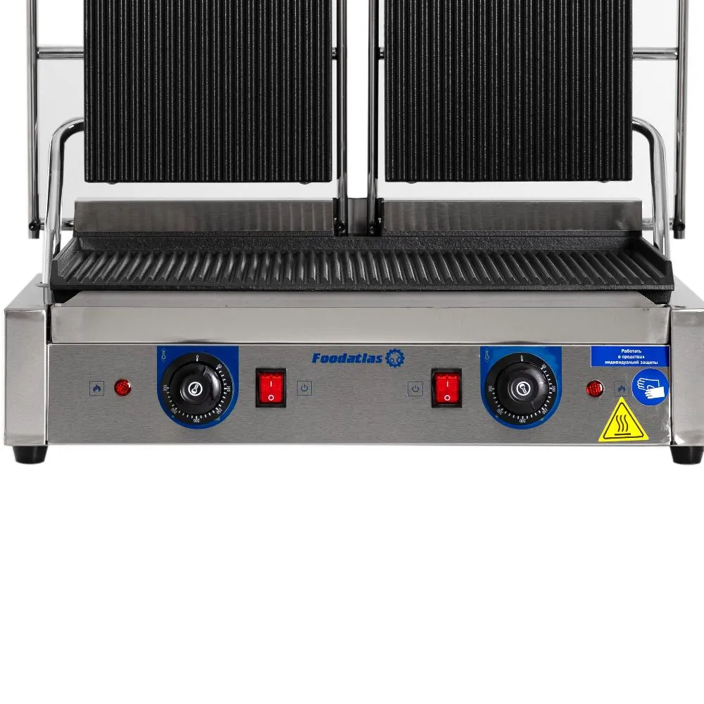 - Двойные нагревательные плиты – независимая регулировка температуры (50-300°C) поверхностей